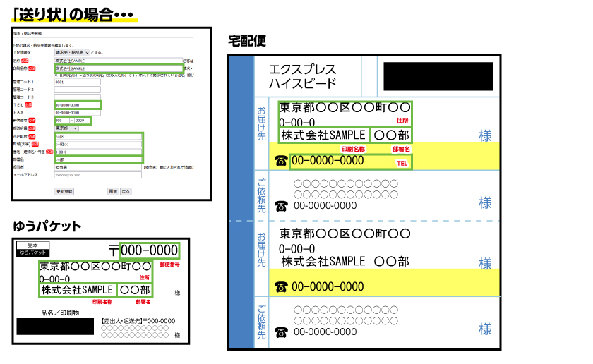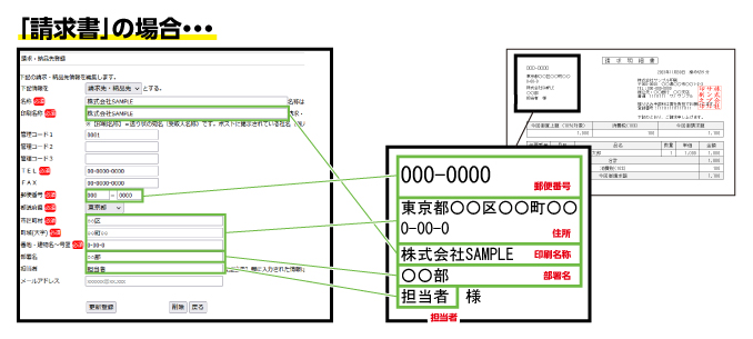 請求書や納品書・送り状に関わるご住所の記載が行えます。