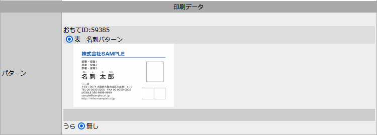 グレーの入力欄は選択中の名刺パターンでは使用できない項目です。