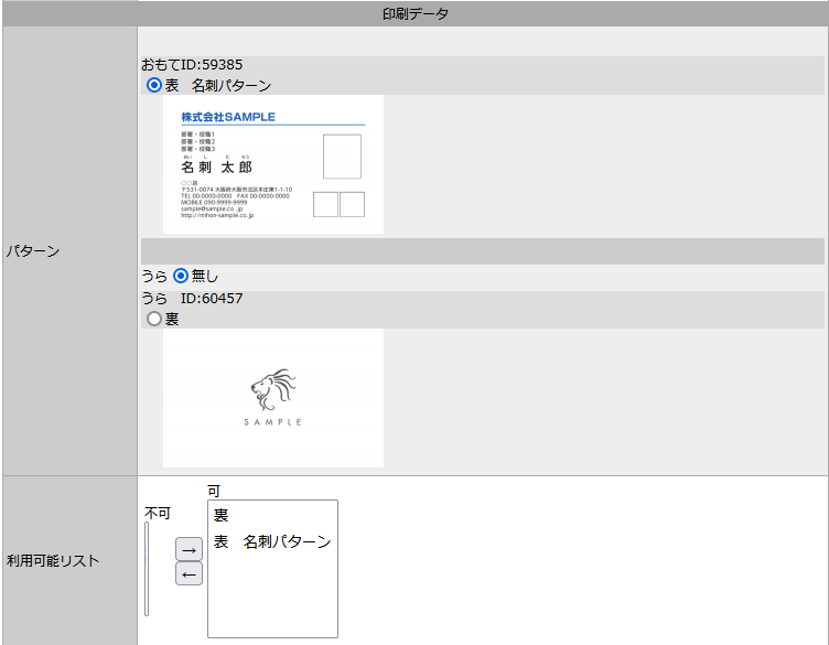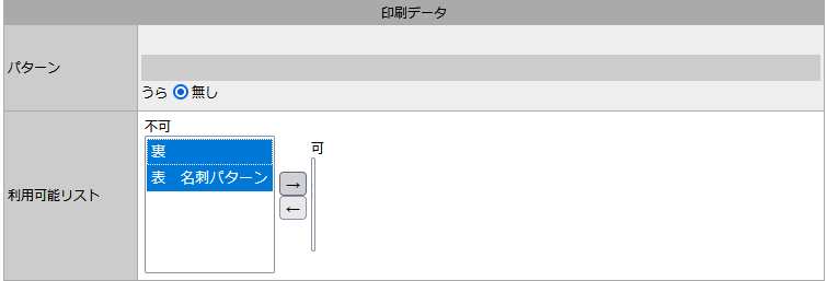 選択できるパターンがない場合は「利用可能リスト」の「不可」にあるパターンをクリックして「→」ボタンで「可」へ移動してください。